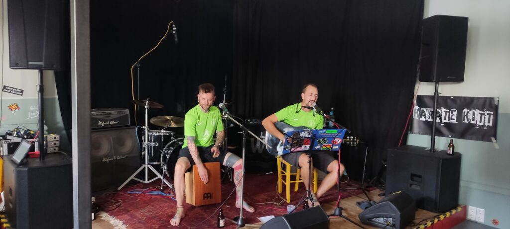 Ein weiterer Solo Songwriter Auftritt mit eigenen Texten. Was für eine Mega-Stimme und Energie. Der Tim, bekannt auch von den Erwins und als Organisator der Punkrock Meuterei, beweist hier, dass er es auch Solo total drauf hat. Tanzbare Musik und nachdenkliche, manchmal auch etwas nostalgische Texte. Ein äußerst bewegender Gig, der das Publikum voll mitnimmt. Am Ende gibt’s noch ein Foto mit dem Publikum.