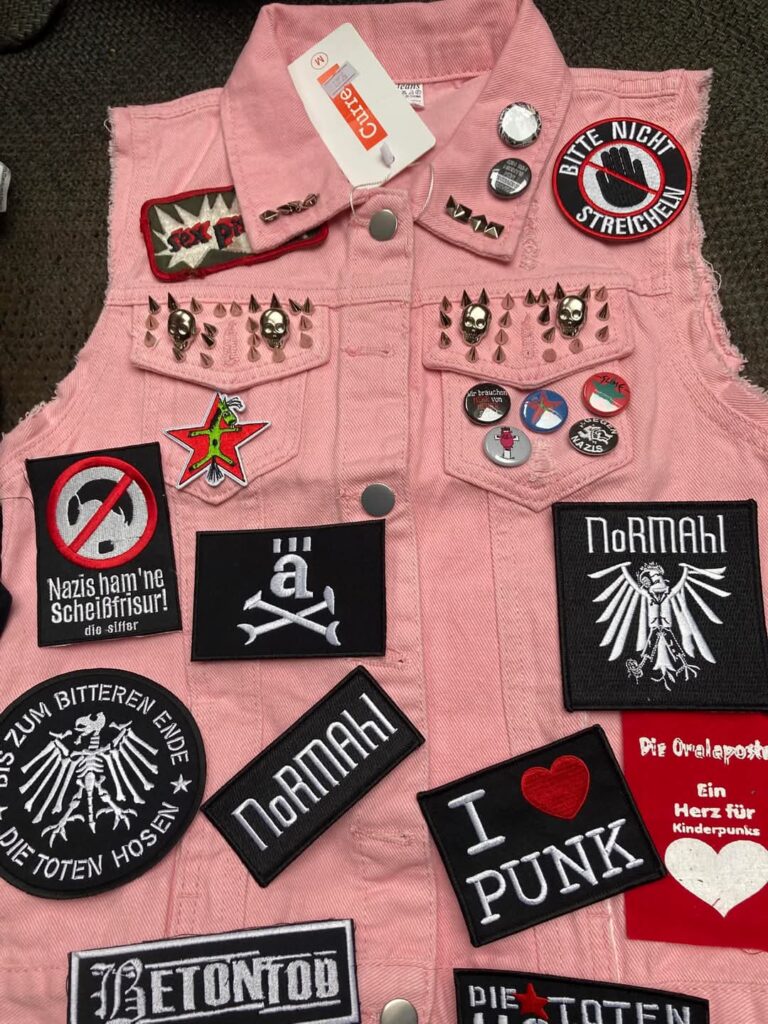 Gerrit und Kathi sind ein tolles Beispiel für die Solidarität und den Zusammenhalt in unserer Gruppe. Gerrit hatte ziemlich am Anfang seiner Zeit bei uns einen Aufruf gestartet, da er mit und für Kathi eine eigene Kutte gestalten wollte und dafür noch Aufnäher und Buttons benötigte. Die zwei erobern schließlich regelmäßig mit Kathis Rolli die Festivals der Republik und da will eine Punkrock-Lady natürlich auch entsprechend gekleidet sein. Kurzum, sie wurden durch unsere Gruppenmitglieder reichlich mit Patches, Buttons, Accessoires und Aufklebern ausgestattet und die Mission „Kutte“ konnte erfolgreich abgeschlossen werden.