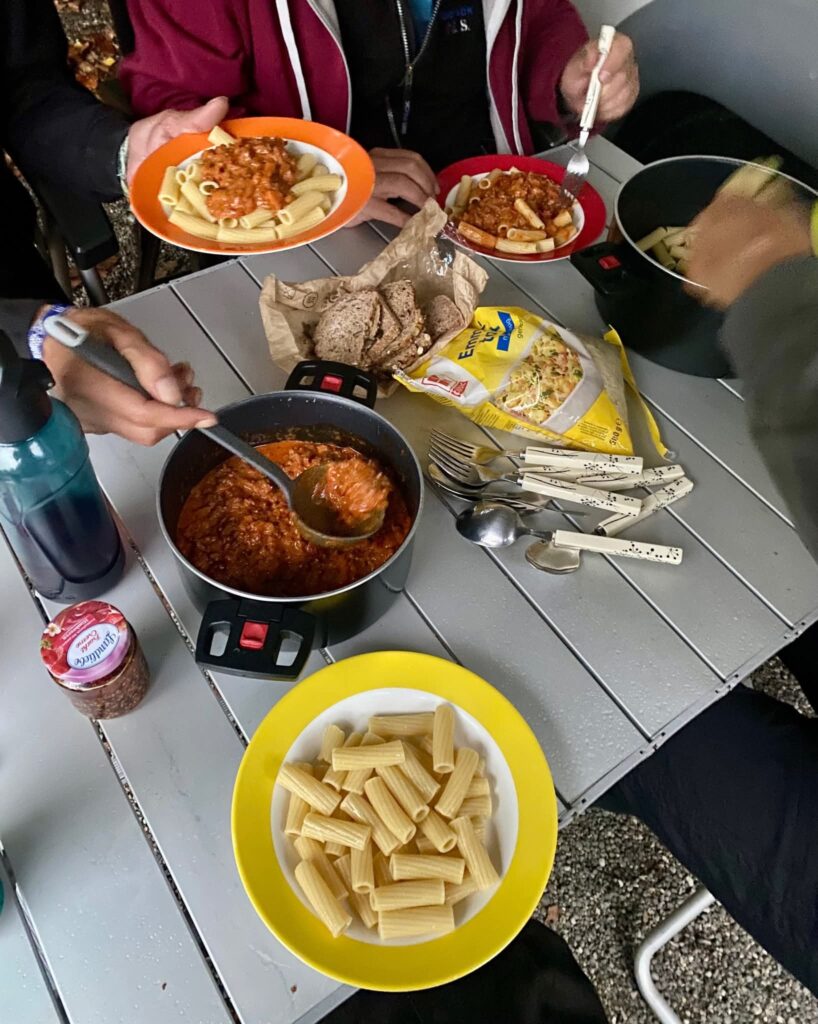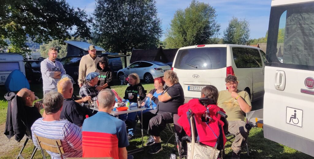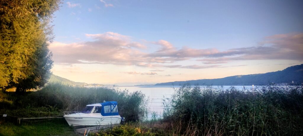Am Donnerstag Nachmittag ging es dann für Sascha und mich los in Richtung Bodensee und nach zweieinhalb Stunden sind wir am Campingplatz Schachenhorn angekommen. Dort wurden wir dann, nach einer spannenden Anmeldung an der Rezeption, schon von Angi und Marc, zwei Tante Inge Fans und Freunde von Sascha, mit einem warmen und sehr leckeren Abendessen begrüßt. Mein besonderer Dank geht an dieser Stelle an Euch zwei, denn von Kaffee, über Frühstück, Essen, Kuchen (was für eine geile Linzertorte), bis zum Strom, Bier, Mirabellenschnaps (fast so gut wie die Linzertorte) und vielem mehr, ihr habt einfach an alles gedacht, im Wohnmobil dabei gehabt und alle ganz selbstverständlich daran teilhaben lassen. Wahnsinn, vielen lieben Dank noch einmal dafür 🫶