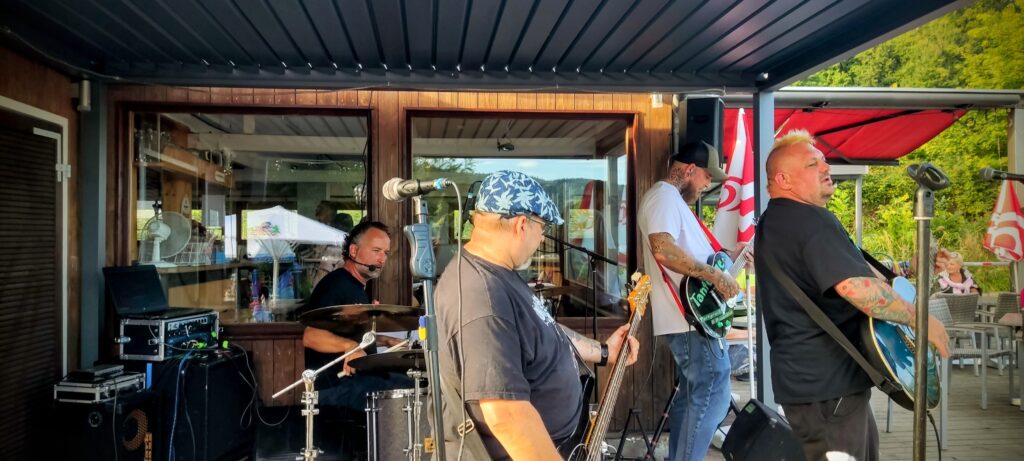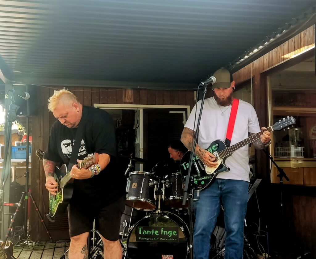 Und so wurde ausgelassen am Restaurant gefeiert, getanzt, geschunkelt und gelacht und Tante Inge hat zwei Stunden lang alles gegeben auf der Bühne, was für ein grandioser Auftakt. Anschließend wurde hier und da noch geredet, die Band hat noch die Instrumente und Anlage abgebaut und im Hänger verstaut, bis sich dann mit der Zeit alle im „Wohnzimmer“ eingefunden hatten. Erleichtert über den Ablauf, zufrieden mit dem geleisteten und der Resonanz der beim Gig anwesenden, wurden dann noch in der gemütlichen „Punkrock-Familienrunde“ einige Band- und Fangeschichten erzählt, viel geredet, noch mehr gelacht und feuchtfröhlich die angebrochene Nacht verbracht, bis sich all die müden Geister in ihre Schlafgelegenheiten verzogen hatten und der erste Tag somit endete.