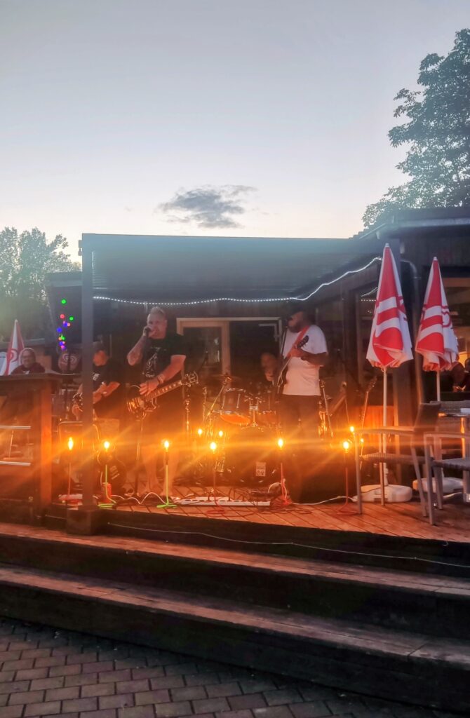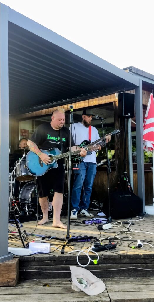 Nach einem weiteren tollen Konzertabend ging es zurück in unser „Wohnzimmer“. Die Band wurde noch von einem neuen Fan zu Getränken eingeladen, man unterhielt sich mit dem Publikum, Richard und dem Restaurant-Team und lauschte den Klängen von Balladissimo. Nach dessen Auftritt wurden die Instrumente und Anlage noch versorgt und mit später werdender Uhrzeit kamen auch alle irgendwann wieder im Camp an. Wir hatten bereits begonnen unser Versprechen einzulösen, konnten endlich mit Kathi anstoßen und gemeinsam ein paar Becher Eierlikör bechern 😁