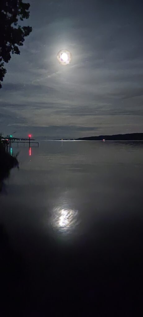 Das Wetter sah bis dahin ganz gut aus und eigentlich war der Plan, das Zelt noch aufzubauen. Am Platz angekommen, dauerte es nicht mehr lange und der Himmel öffnete wieder seine Pforten. Wieder nix mit Zelt stellen, dafür gemütlich und trocken unter der Markise am WoMo gesessen, wieder viel geredet und gelacht.