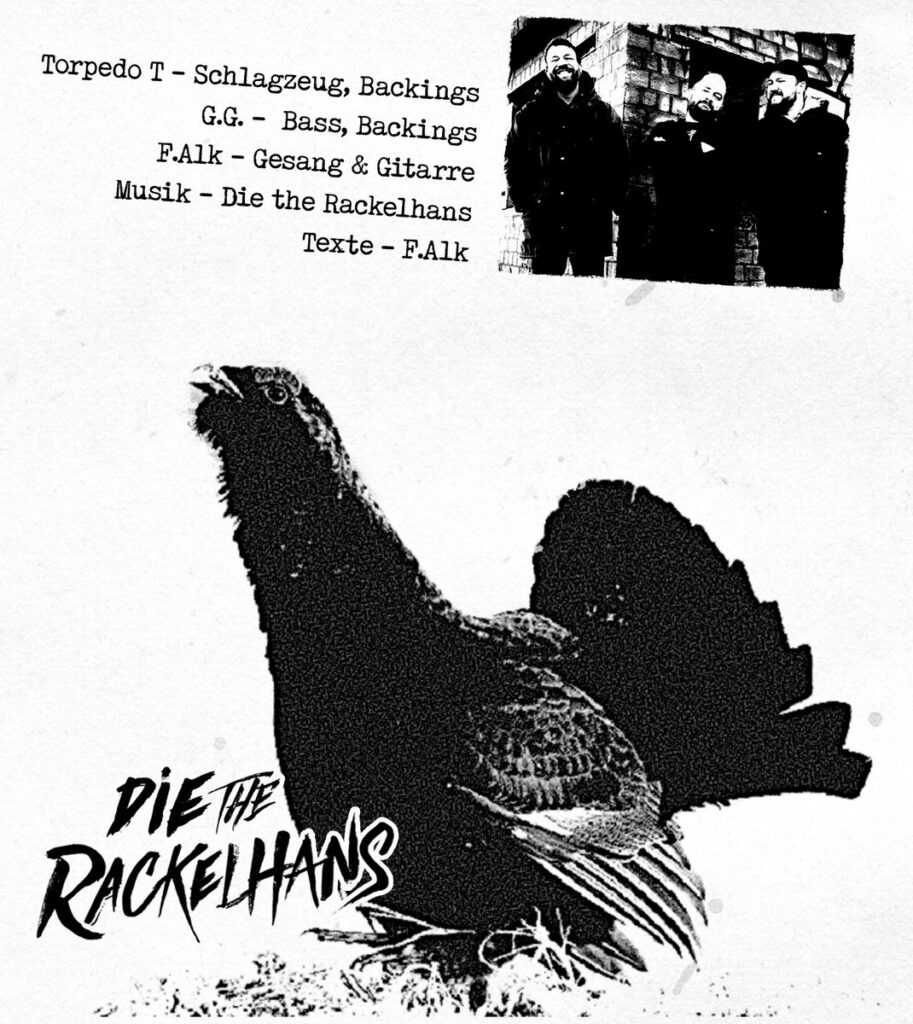 Bevor uns die Jungs von Die The Rackelhans noch einige sehr schöne Begebenheiten aus ihrem Banddasein schildern, möchte ich mich ganz herzlich bei F. Alk bedanken. Selten wurden unsere Fragen so ausführlich, einfühlsam, ja – liebevoll beantwortet.