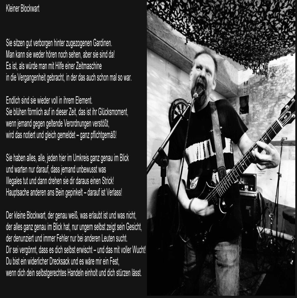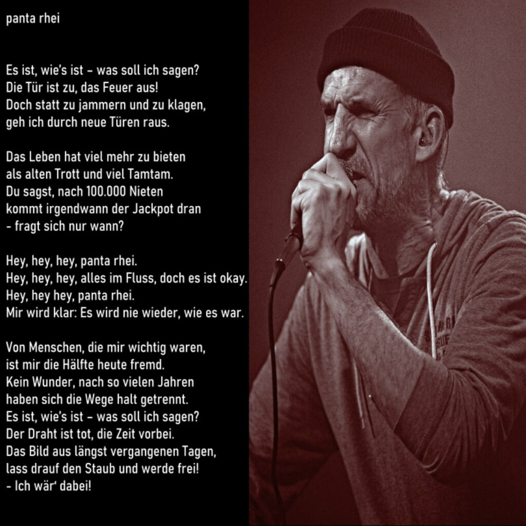 „Gibt’s von ‚ner andern Band was Neues, bin ich nicht selten irritiert, weil trotz der High-End-Produktion mich die Musik nicht infiziert. Haben die das ernsthaft oder nur, weil es gewünscht war, so rausgebracht? Bands, die ihre Lieder wie ein Feuerwerk abbrannten! Wo sind sie hin: Wo sind die Ecken, wo die Kanten? Vom Mainstream geschliffen, vom Business domestiziert…“