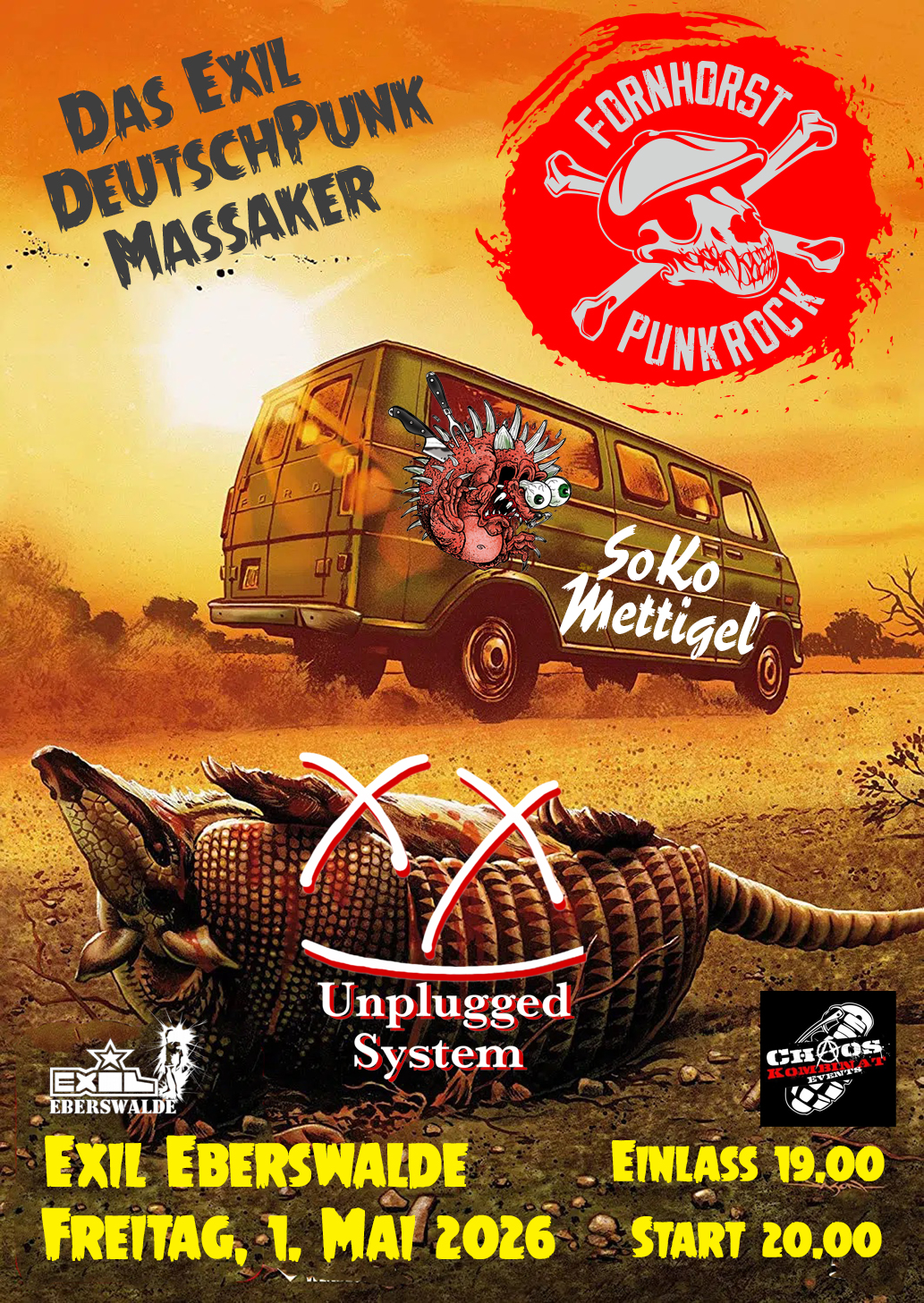 Chaoskombinat & Exil Eberswalde laden ein zum DeutschPunk Massaker am 1. Mai 2026: