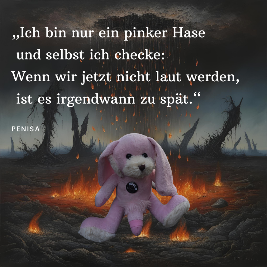 Bevor dieser süße pinke Hase bei uns gelandet ist, war sie bei bei Gluthoden und Frei statt Sicher. Beide Bands gibt es nicht mehr; aber Penisa durfte nicht einfach so verschwinden. Sie passt zu uns und begeistert das Publikum mehr als unsere Musik es tut. Und deshalb trägt auch unsere CD ihr Portrait.
