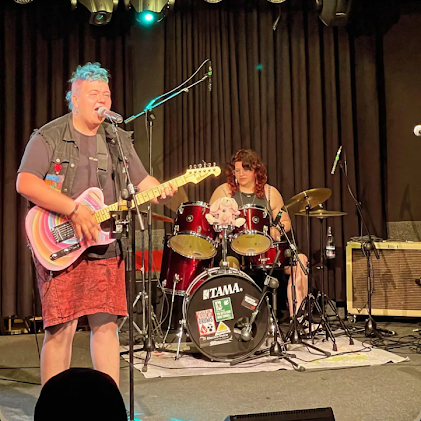 Mich interessiert ja brennend die Frage, was ist Lowpunk? Aber eins nach dem anderen. Erstmal Rückblick ins Jahr 2023. Oksana und Paul spielen zusammen in der Schulband. Punkrock begleitet sie schon das ganze Leben, sie sind damit aufgewachsen. Kurz vor Schulende war klar: Nur hören reicht nicht, also selber machen.